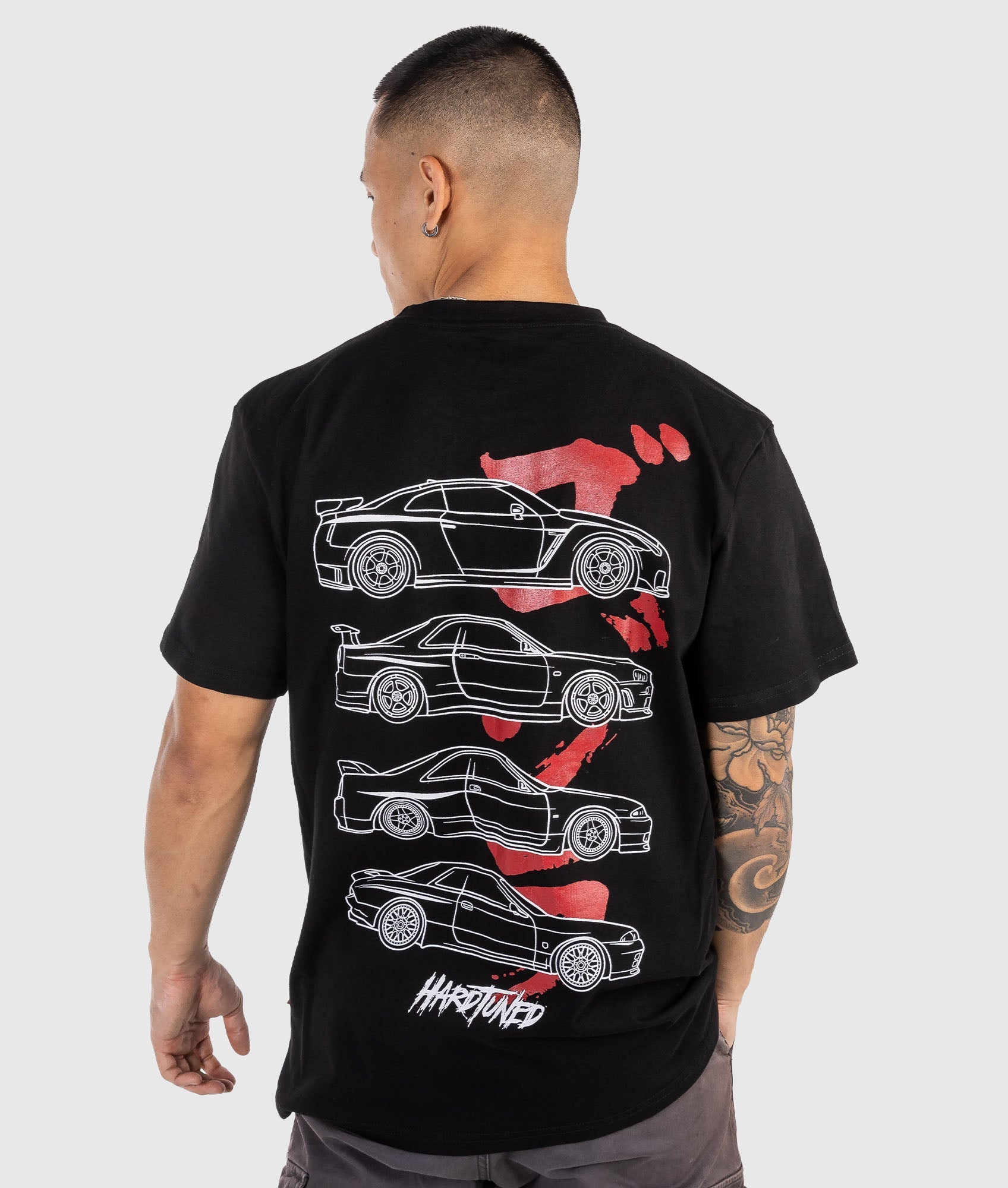 It features the R32, R33, R34 & R35 GTR's and includes a subtle front print, with bold rear print showing off the generations. Show your love for the GTR and add this into your wardrobe.