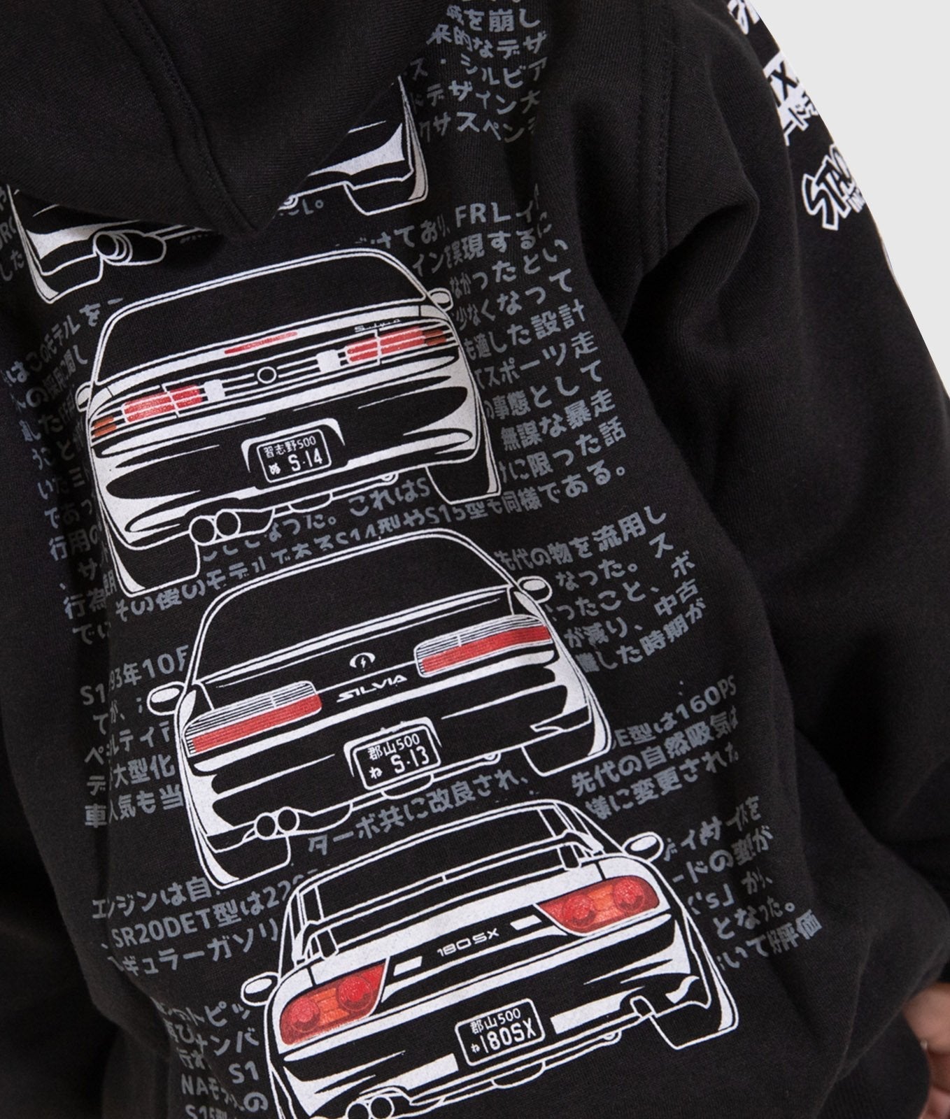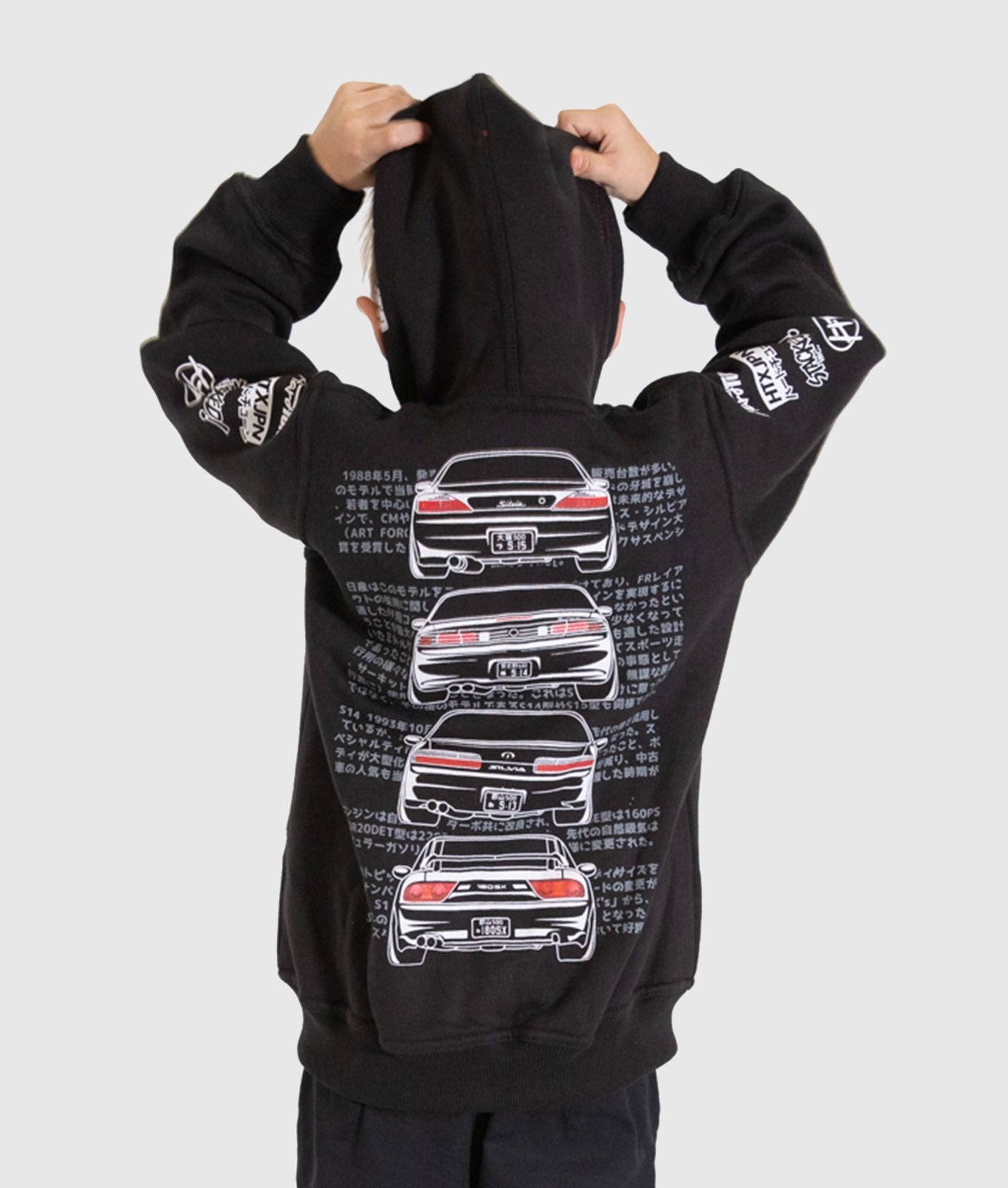 We've been asked for years to release bright, colourful and fun hoodies for kids! Featuring our iconic generations design with the Nissan Silvia!