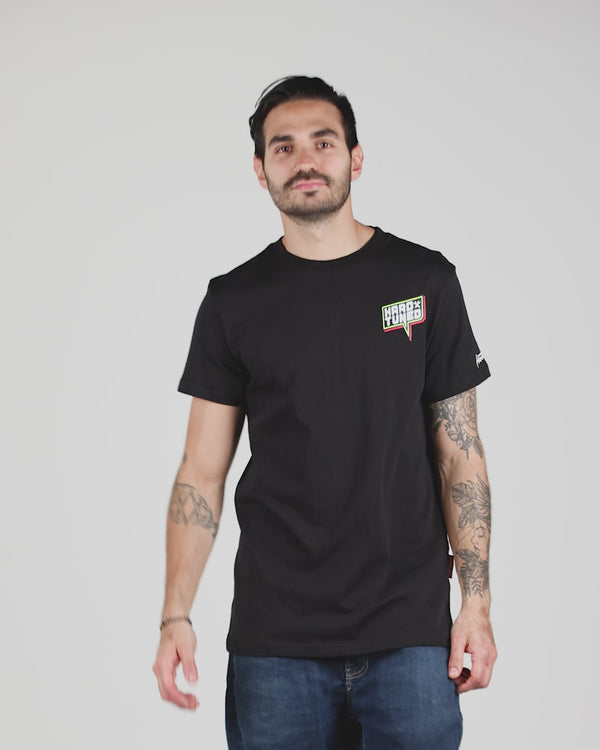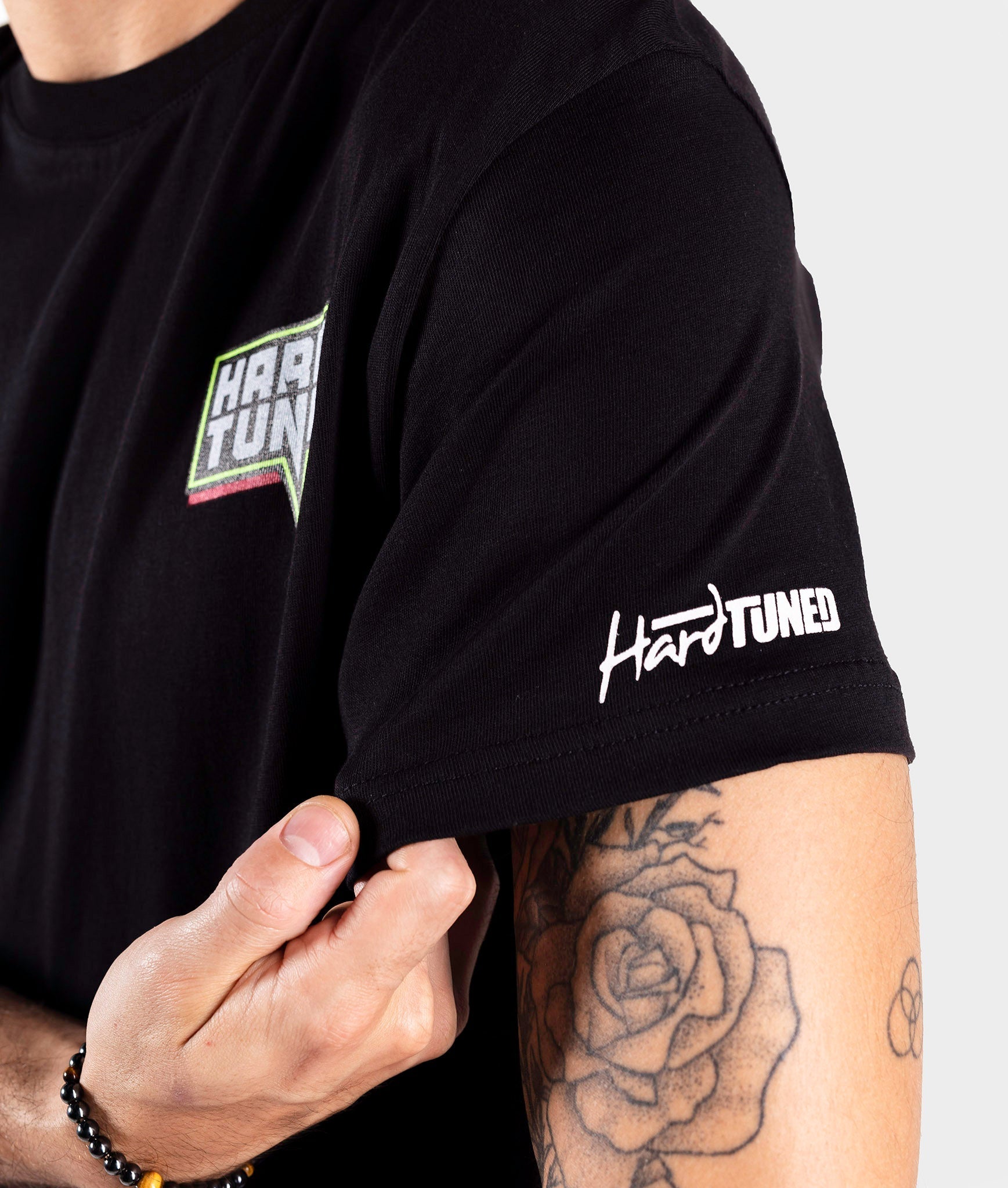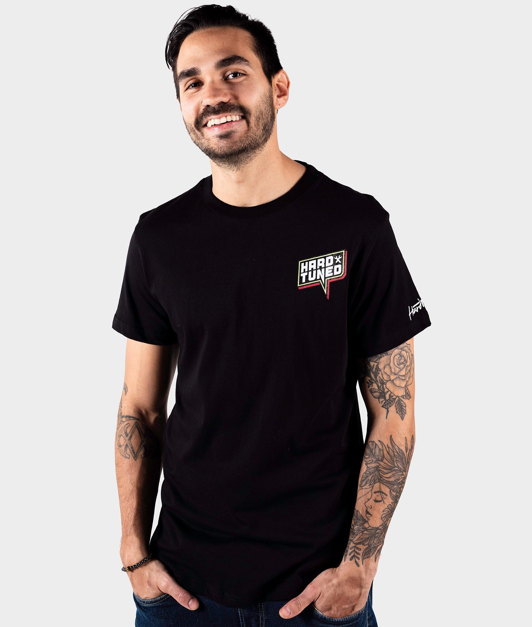 Printed in a bold cell block style with premium plastisol flex inks and laid on a Hardtuned hand-tailored premium combed cotton t-shirt, with 2% elastin for improved fit and comfort.
