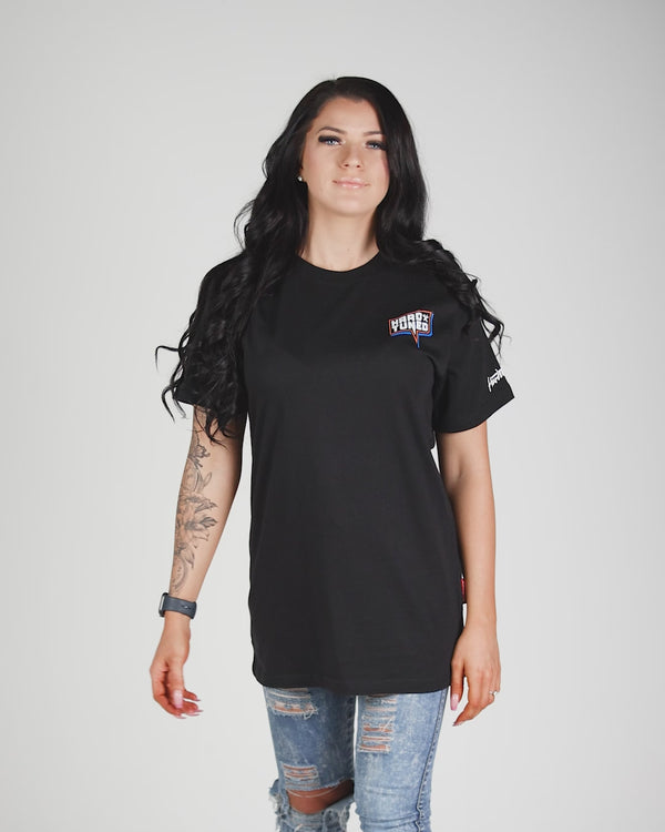 Printed in a bold cell block style with premium plastisol flex inks and laid on a Hardtuned hand-tailored premium combed cotton t-shirt, with 2% elastin for improved fit and comfort.