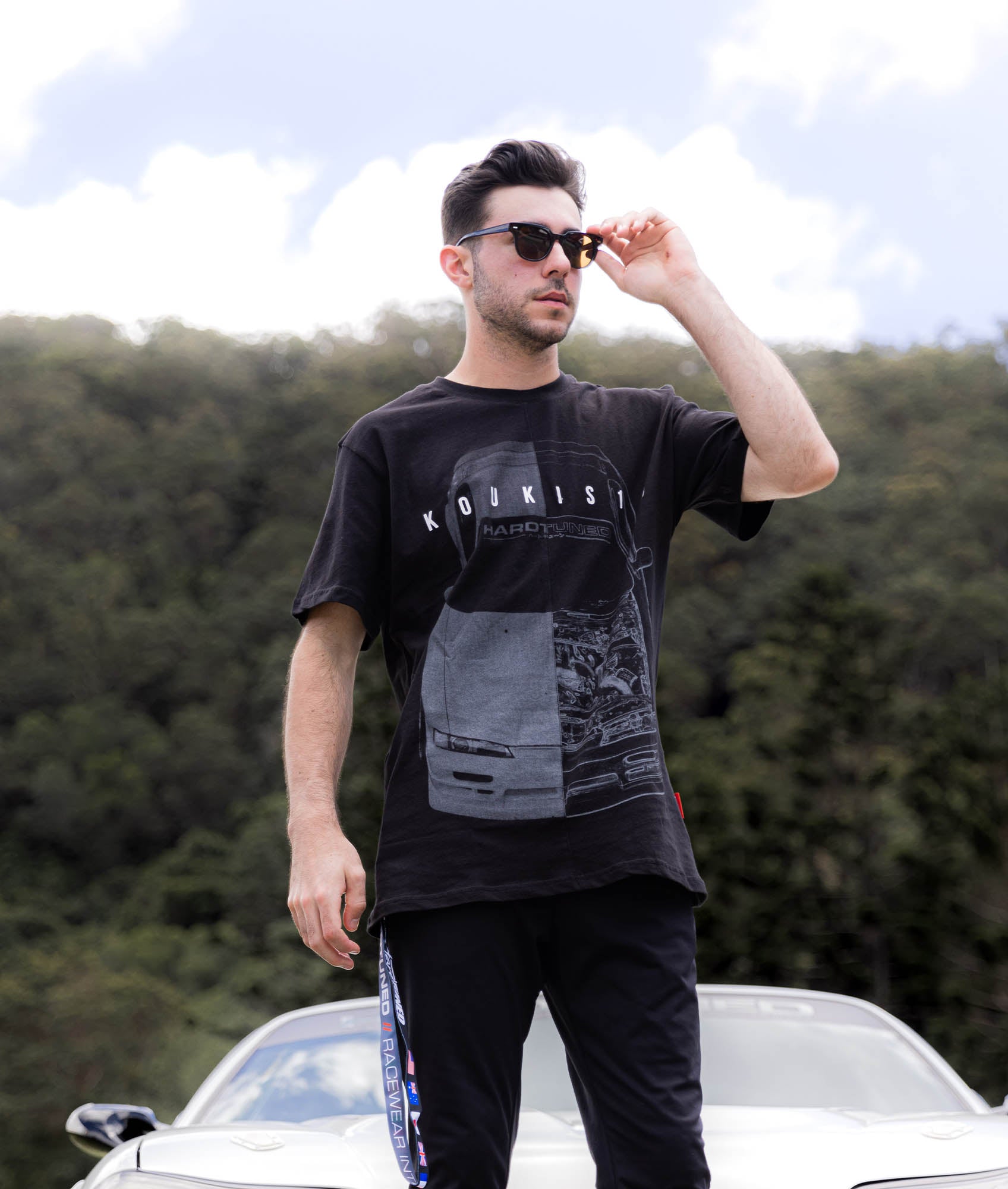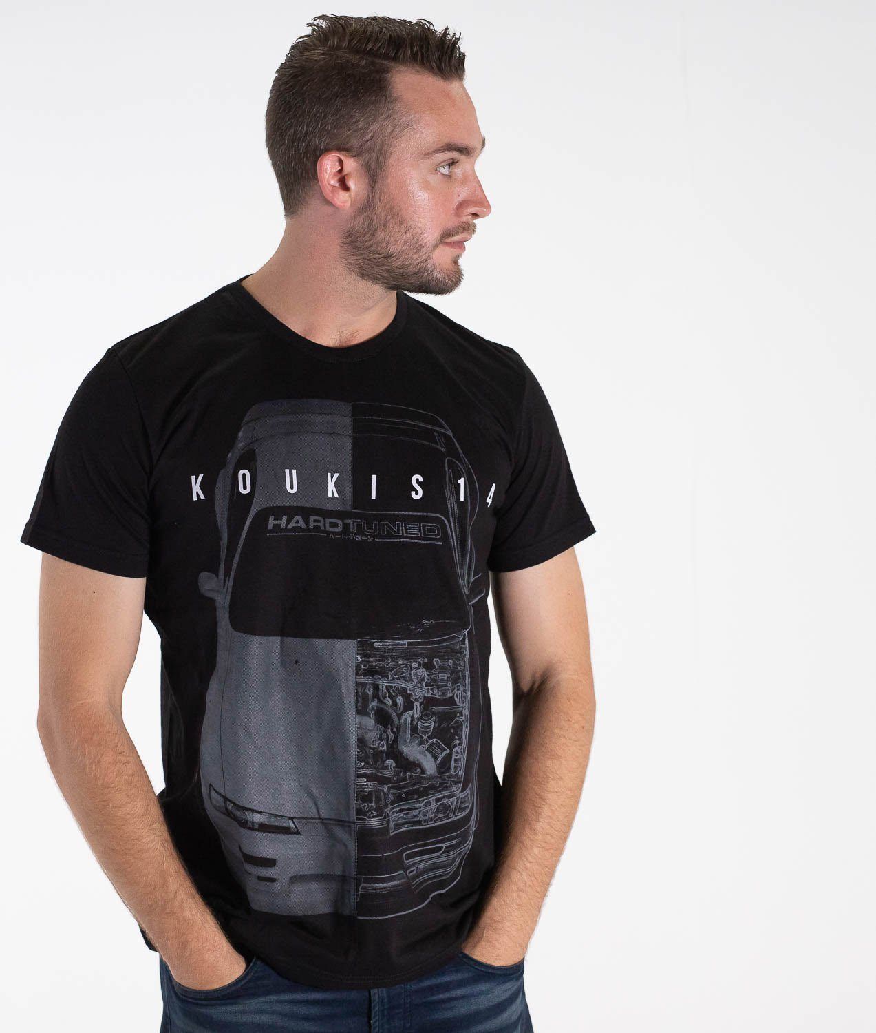 The iconic Nissan S14, now on our split tee design. Featuring half photo & half artistic blueprint, each split tee is assembled from two separate prints, sewn together, then reprinted again after assembly to create a unique finish