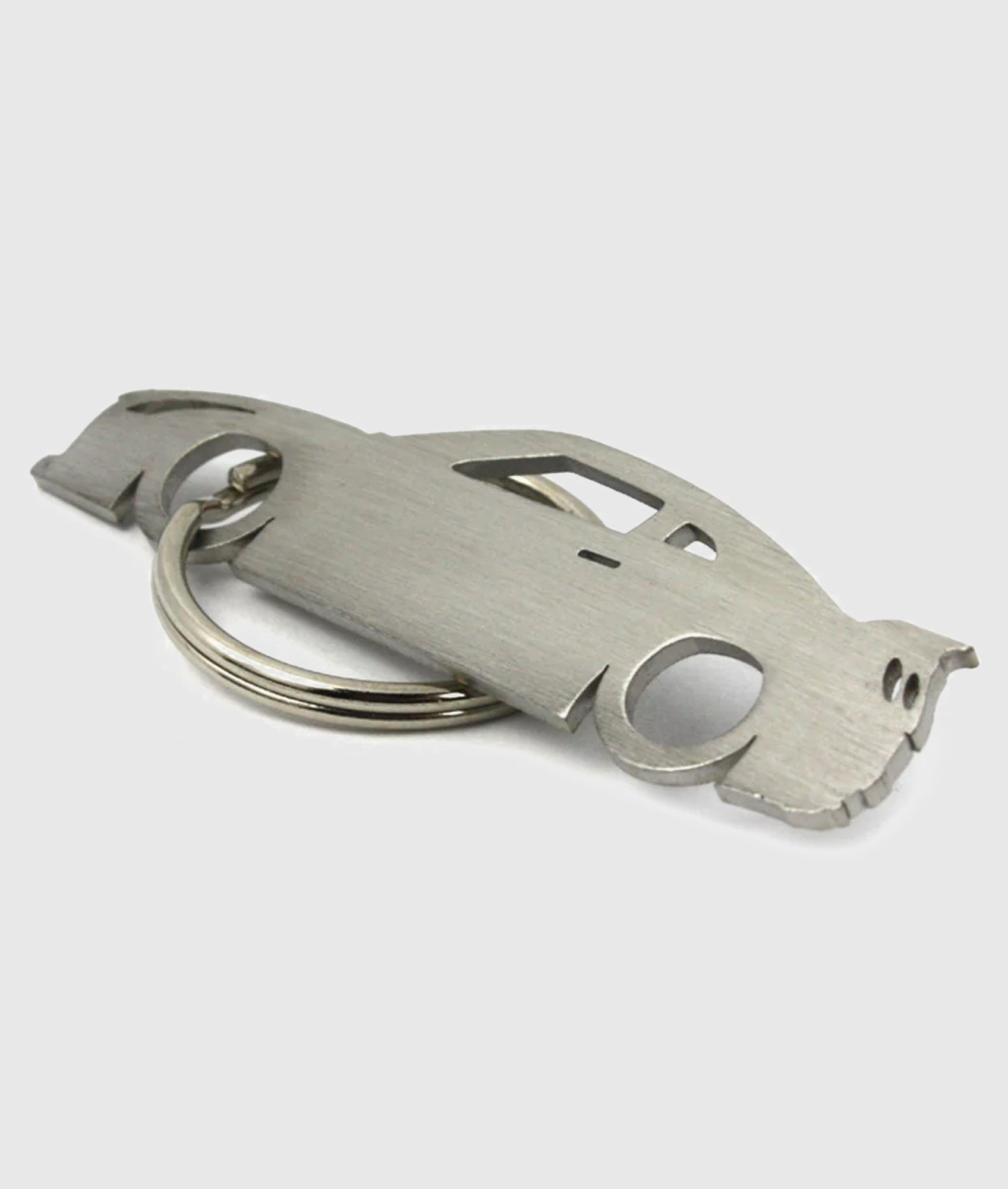 Stainless steel key ring with both sides polished using a brushed effect.