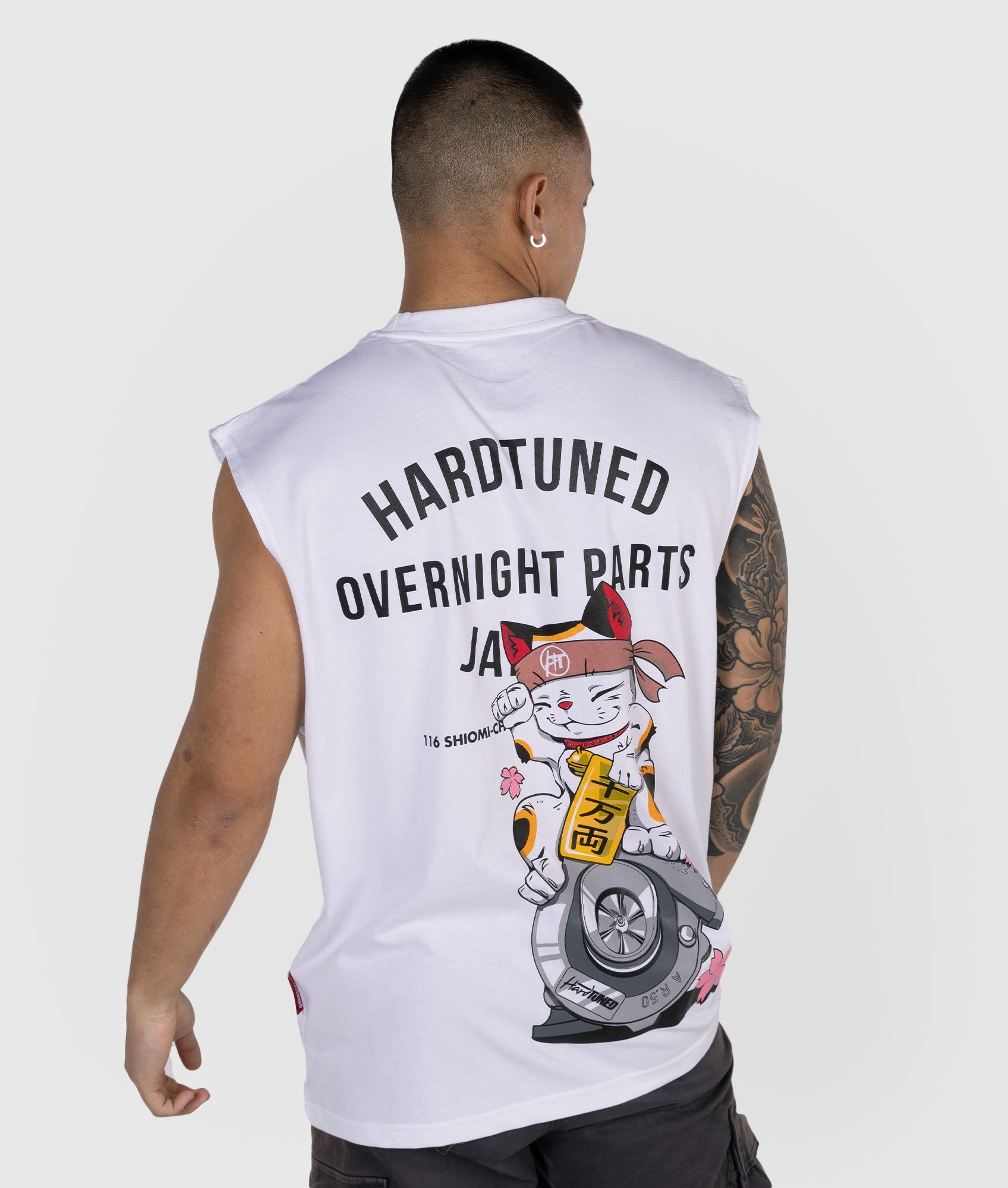 This all-new tank is a stunning reinterpretation of our classic "Overnight Parts Japan" design, overlayed with a vivid high-quality print of the lucky cat and turbo design.