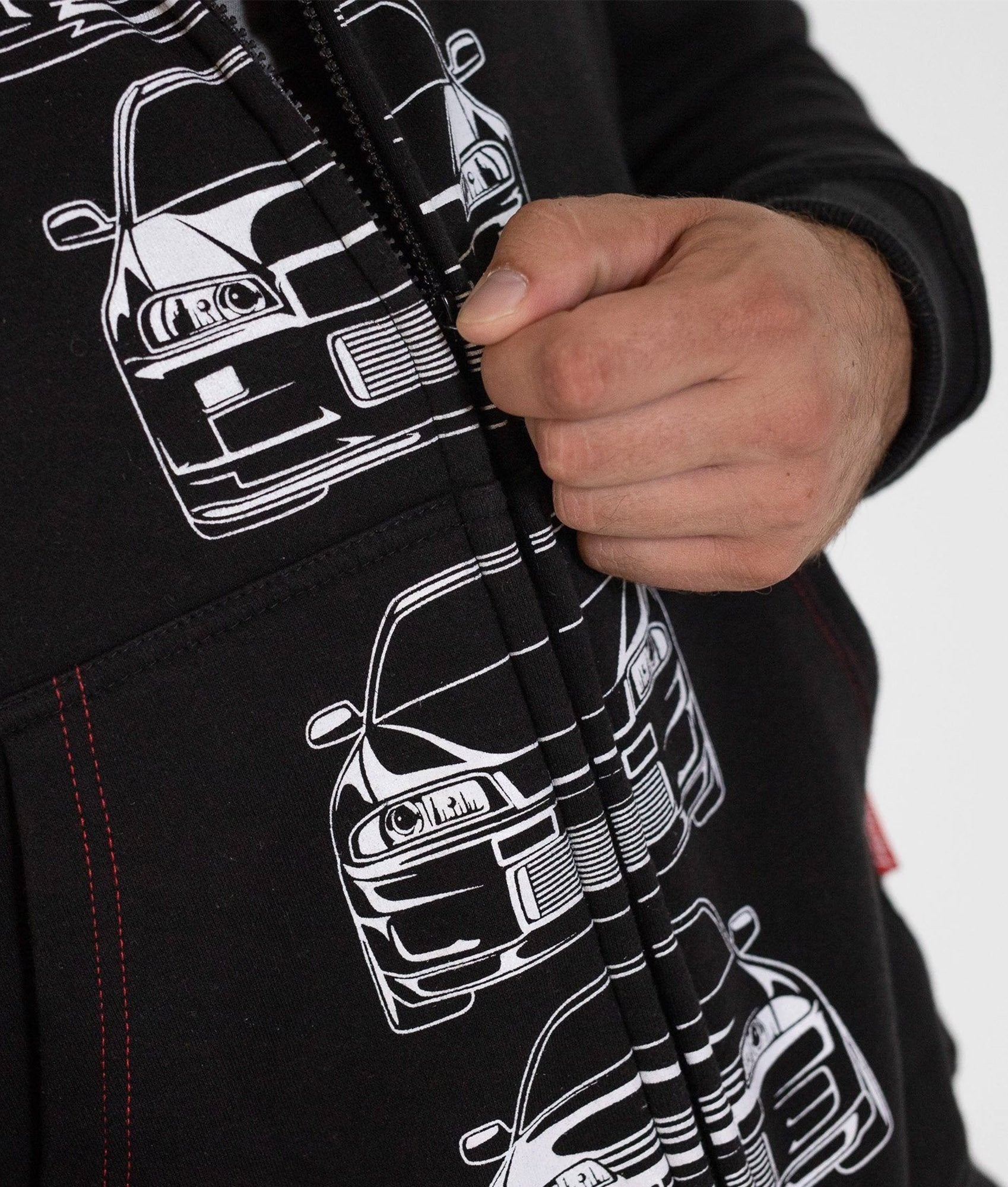 This hoodie is the best way to show off your love for GTRs with front ends of each model on the front that line up perfectly with the zip and the rear ends on the the back, it also features extra print on the hood and sleeves for added style.