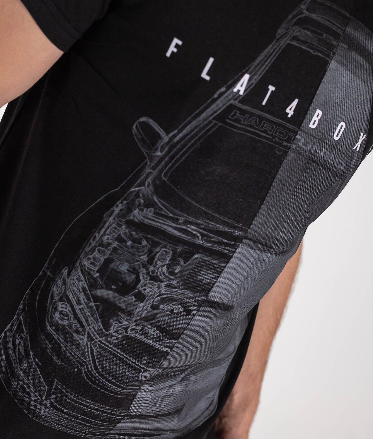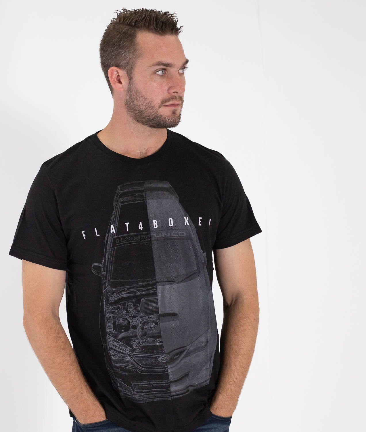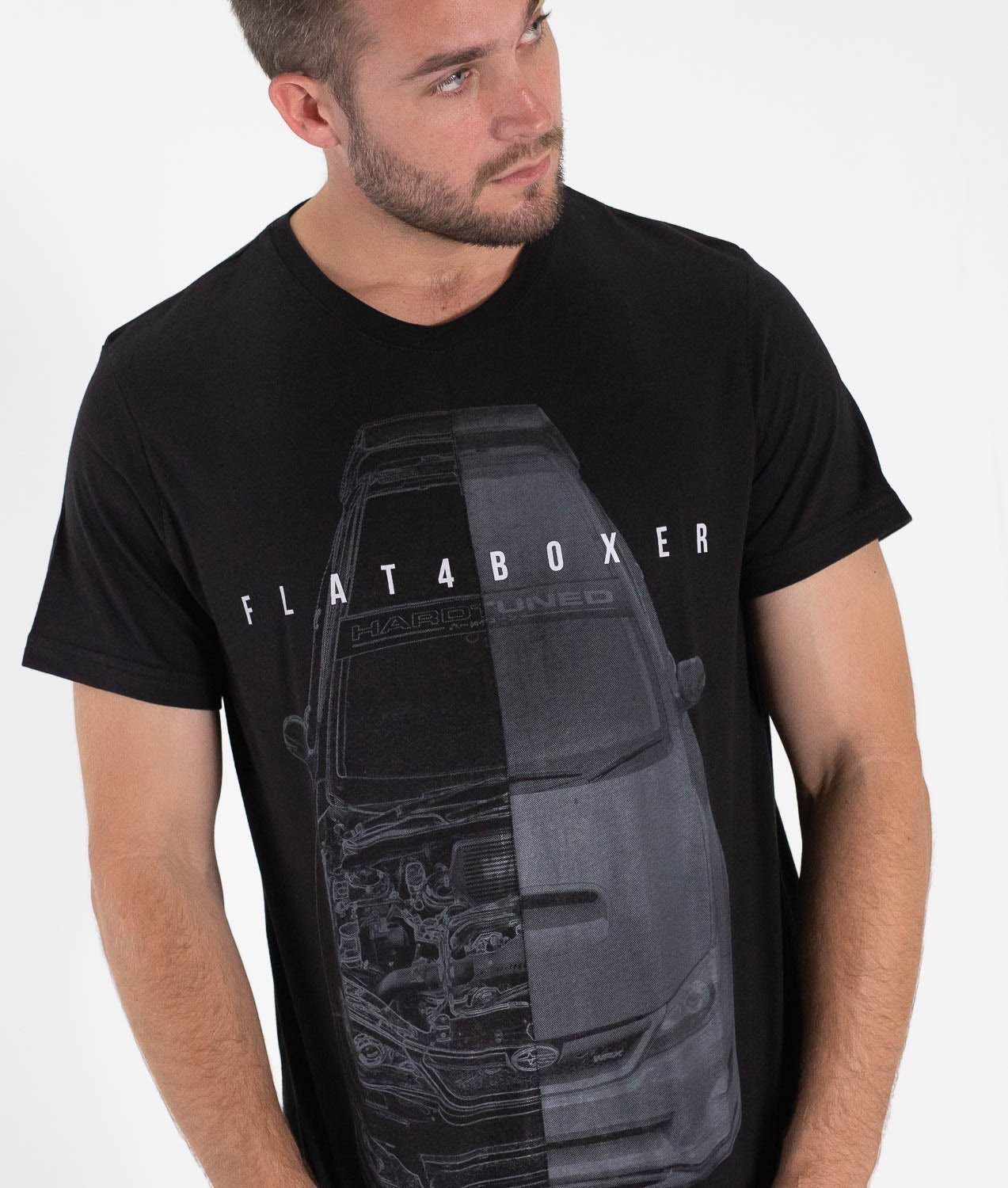 The iconic Subaru WRX Hatch, now on our split tee design. Featuring half photo & half artistic blueprint, each split tee is assembled from two separate prints, sewn together, then reprinted again after assembly to create a unique finish