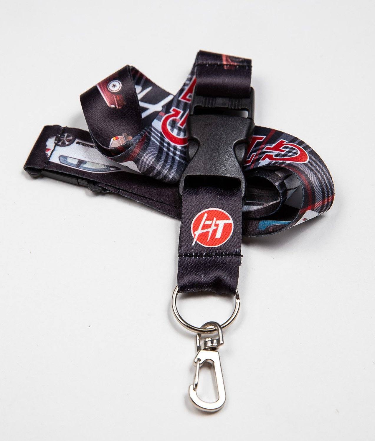 High quality sublimated lanyard featuring a lobster claw clip, key ring, and safety snap.