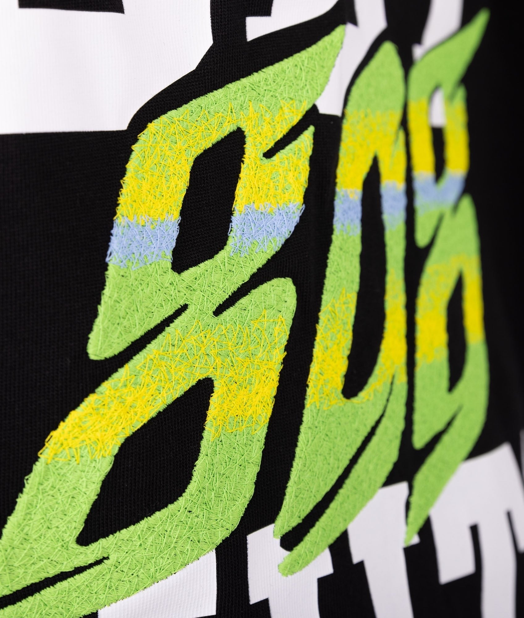 Tailor made on our newly designed BOX CUT heavyweight tee, this garment was created to push the boundaries of our manufacturing, incorporating puff embroidery, screen & even hand melted embroidery rear!.
