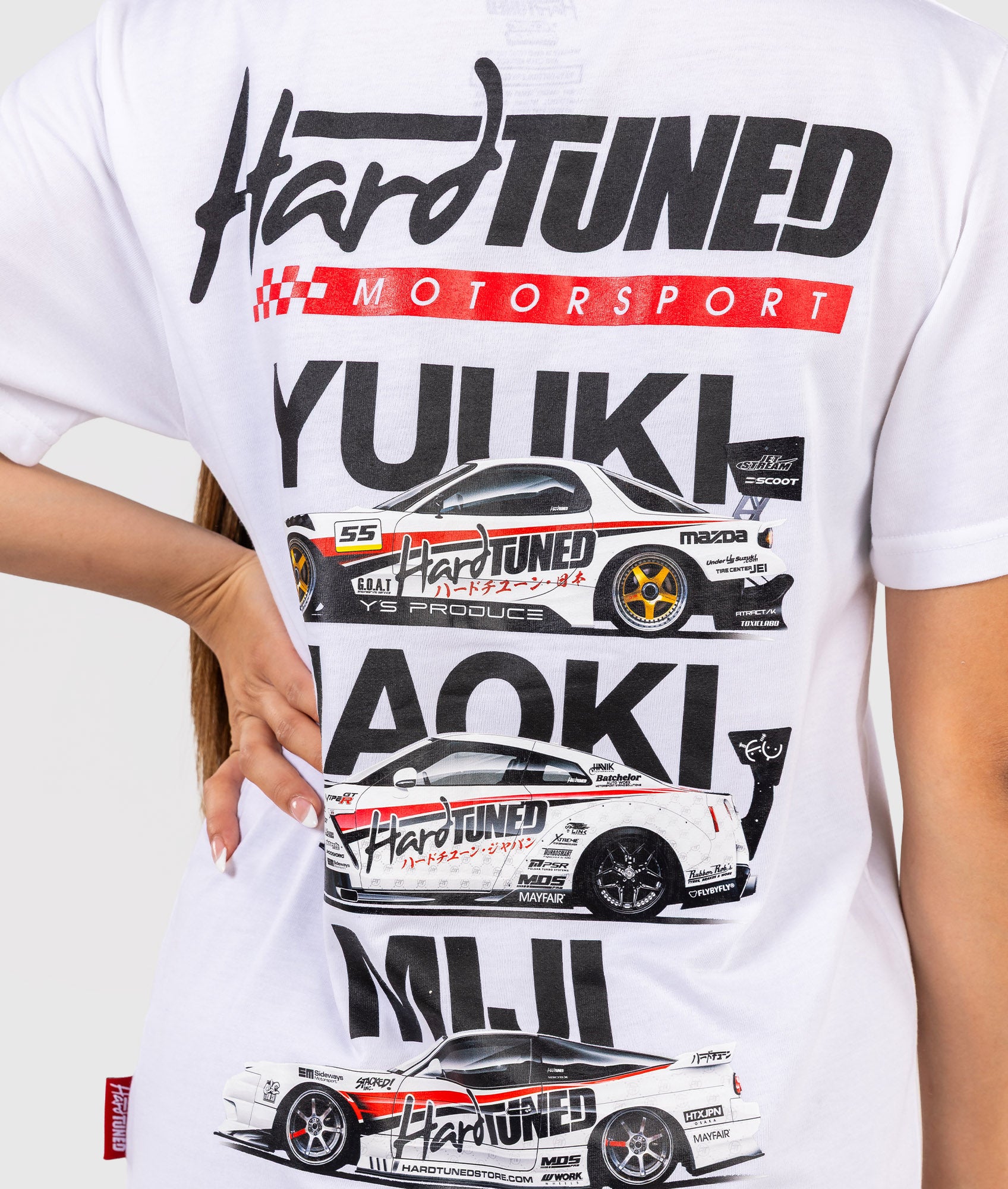 Featuring Hardtuned's three powerhouse drivers - Yuuki Kamakura, Naoki Nakamura, and Miji Takagi, these tee were a sellout at the event. Now's your chance to feel a part of this iconic team.